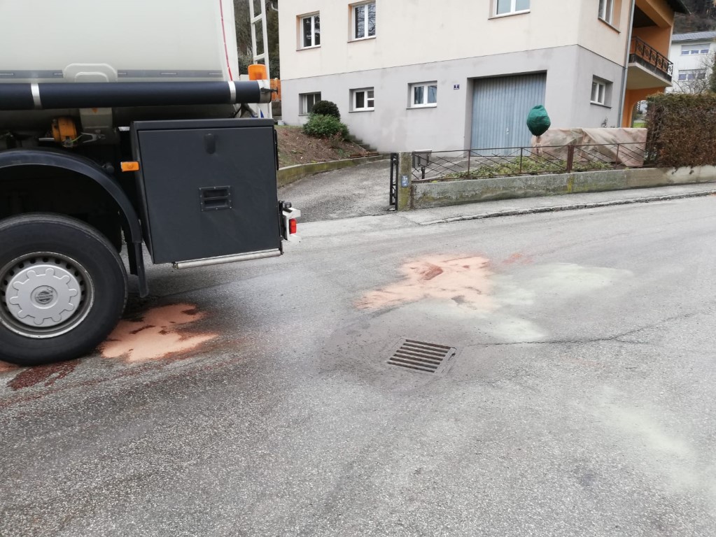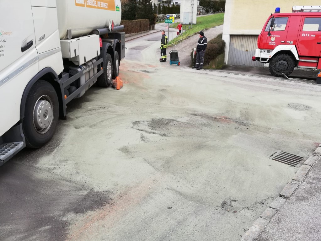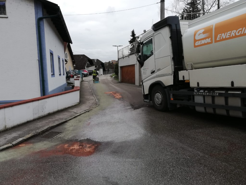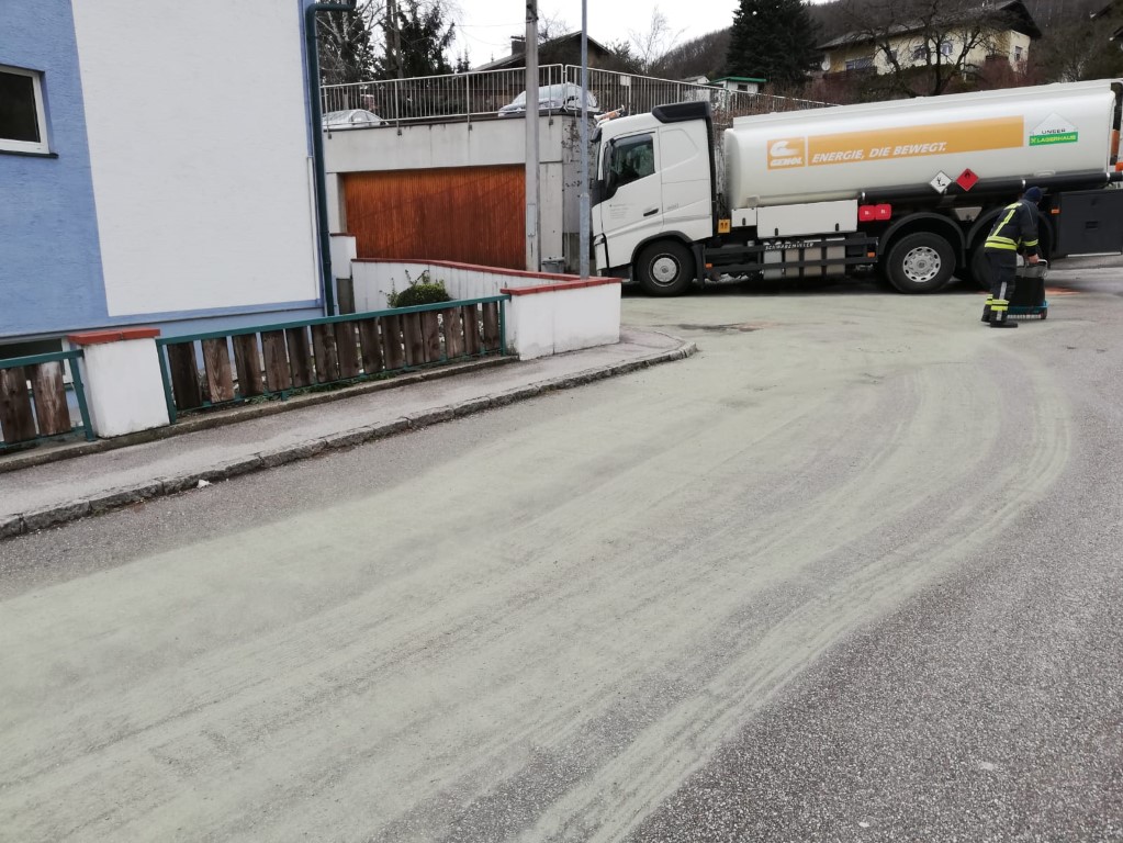 Seitens der Feuerwehr Steyregg wurde das ausgelaufene Öl mit Bindemittel gebunden und die Straße gereinigt.