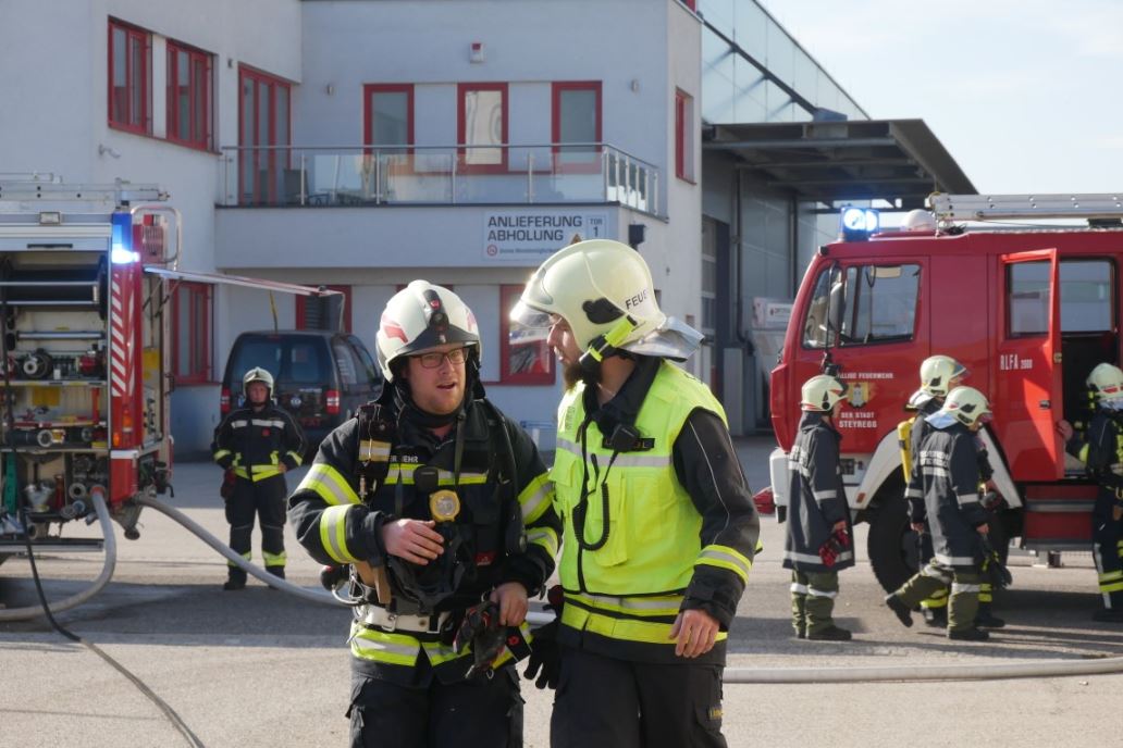 Per „Stiller Alarmierung“ begann um 15:00 Uhr die Übung, am Einsatzort angekommen wurde Einsatzleiter HBM Lukas Lasinger schon vom Brandschutzbeauftragten erwartet. Nach kurzer Lagererkundung teilte er seinen beiden Gruppenkommandanten mit welche Aufgaben sie zu bewältigen haben.