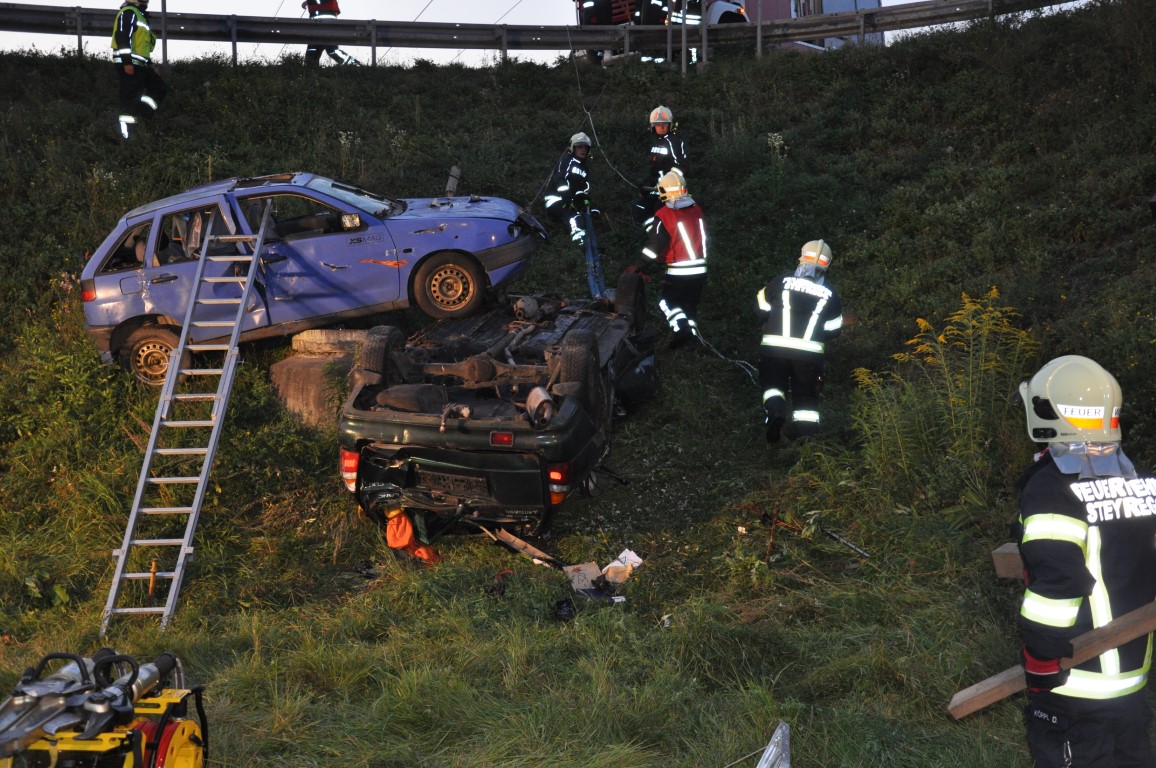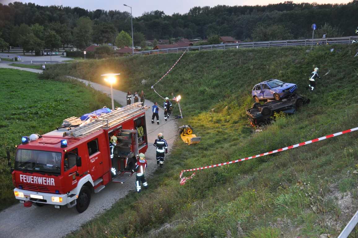 Dieses Mal mussten sie zwei verunfallte PKWs die sich am dachliegen in einer Böschung befanden absichern und mehrere Verletzte aus ihrer misslichen Lage befreien.