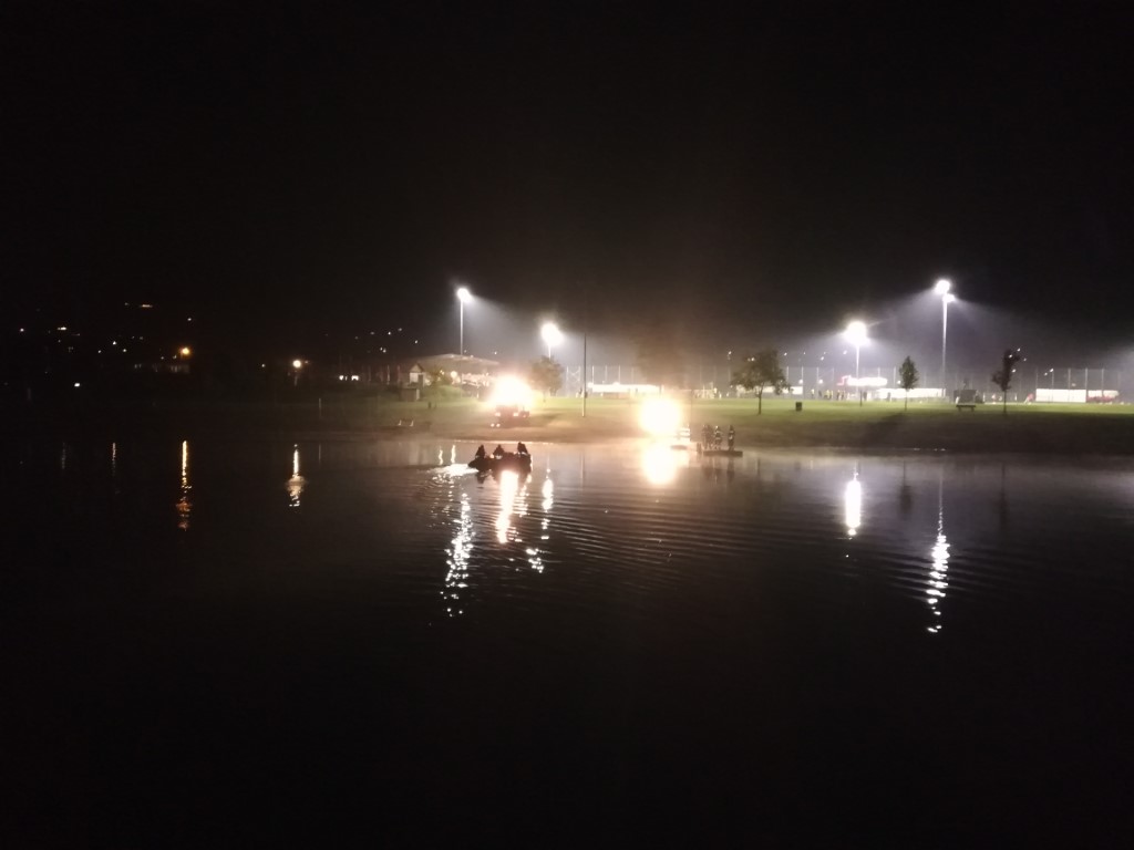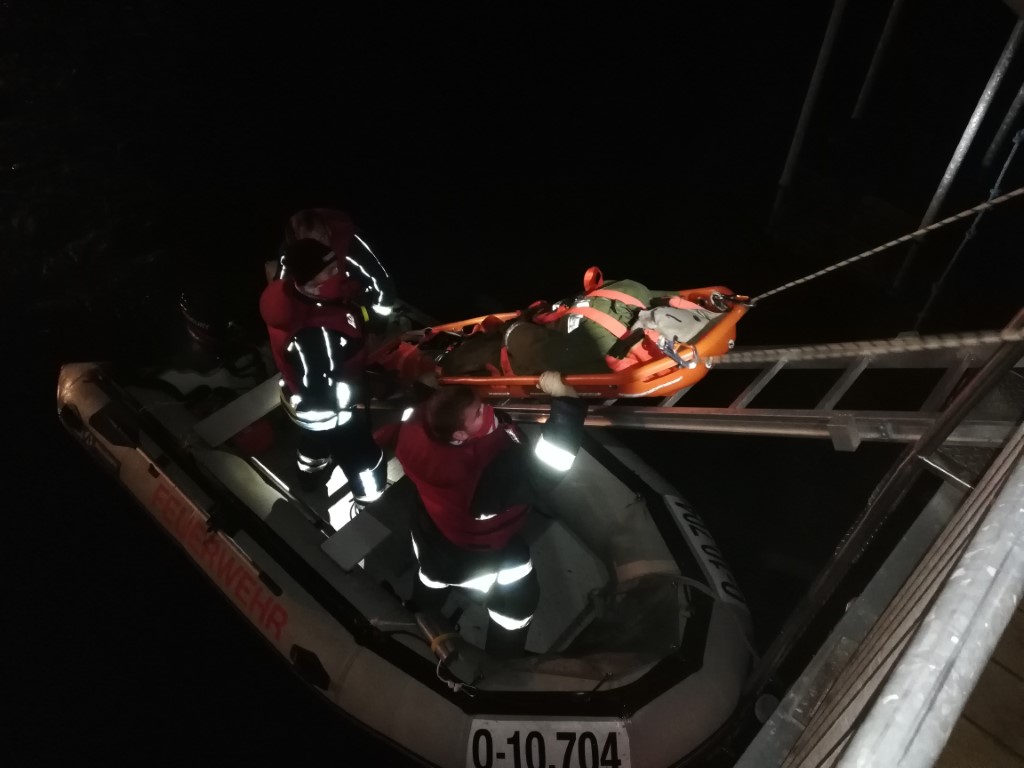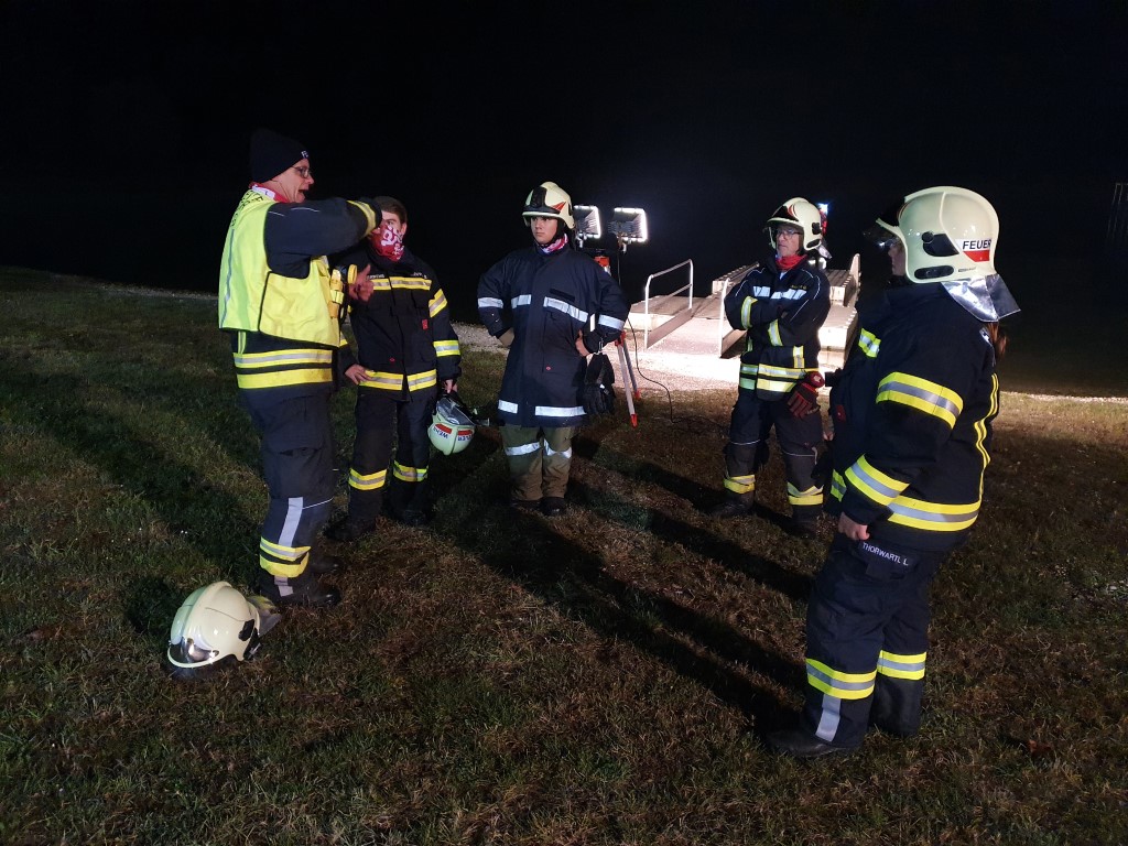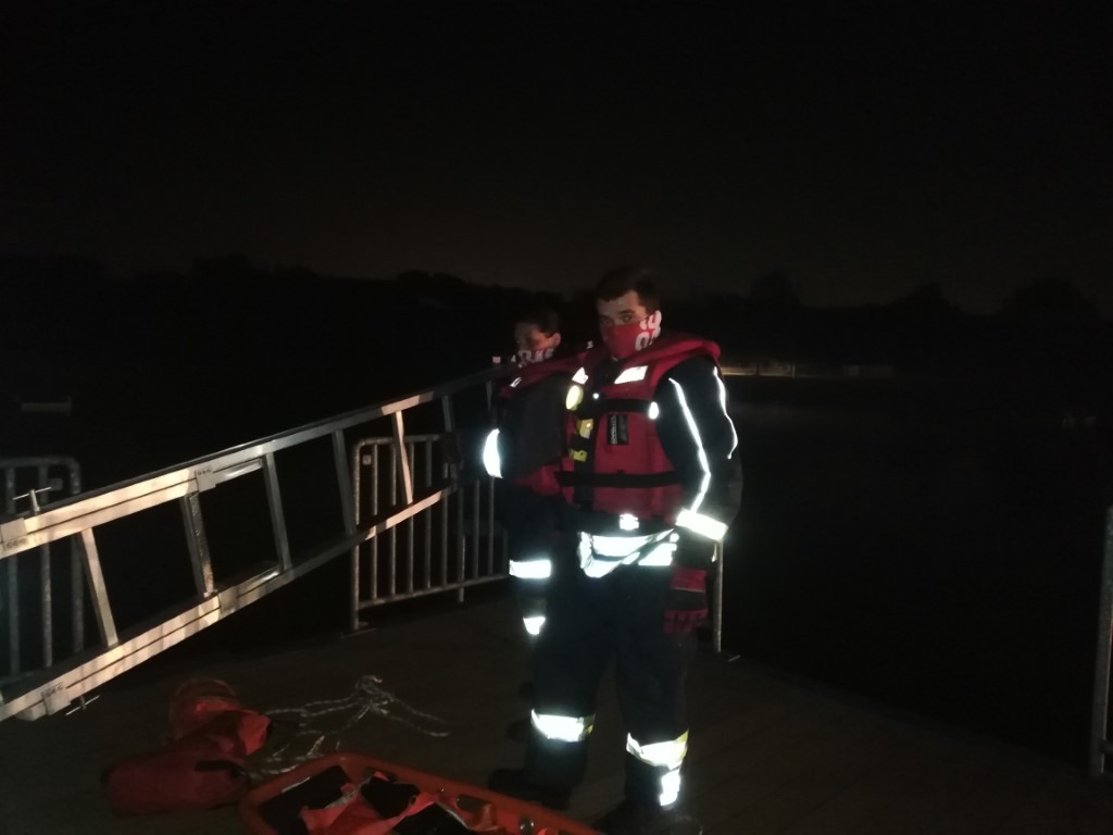 Nach kurzer Einweisung wurden die Kameraden in zwei Gruppen Eingeteilt, wobei eine Gruppe für die Rettung an sich, die zweite für die Beleuchtung des Geländes an Land zuständig waren.