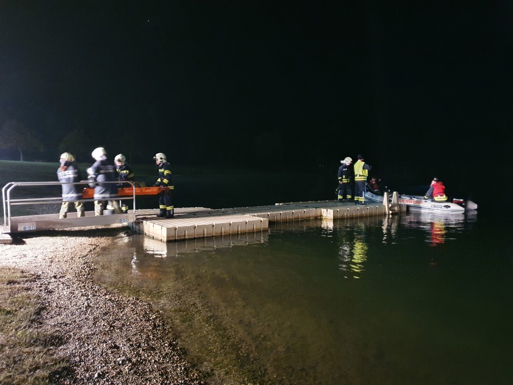 Dabei wurde zuvor von den Übungsbeauftragten AW Phillip Hametner und HBM Wilhelm Schmolmüller eine Übungspuppe auf der Schwimminsel des Badesees Steyregg platziert.