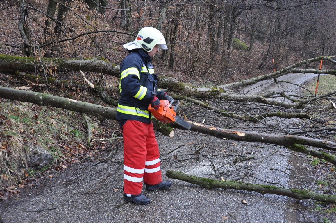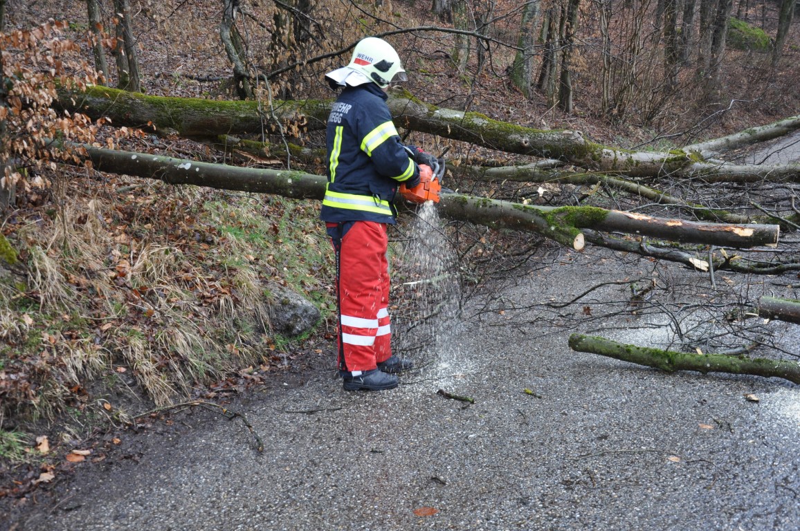 Seitens der Feuerwehr Steyregg wurde der Baum mittels Motorsäge von der Straße entfernt.