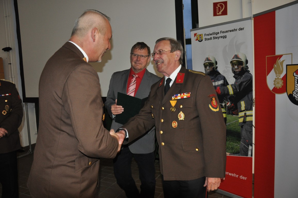 Nach den Beförderungen wurden an HLM Hubert Hackl und HFM Peter Hackl die 25-jährige Feuerwehrdienstmedaille und an E-BI Karl Wöckinger die 50-jährige Ehrenurkunde des OÖ LFV durch HBI Rudolf Breuer und BR Christian Breuer verliehen.
