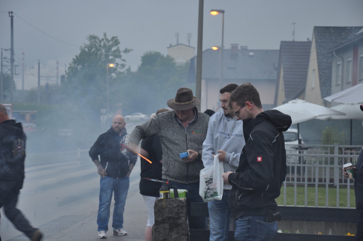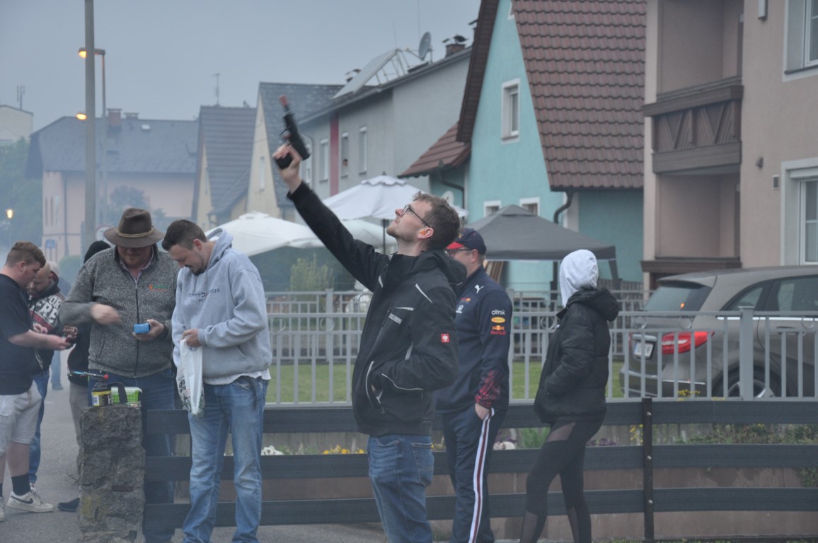 Zuvor wurde von uns der Schwibbogen gebunden und beim Aufwecken vorm Haus des Ehemanns aufgestellt.