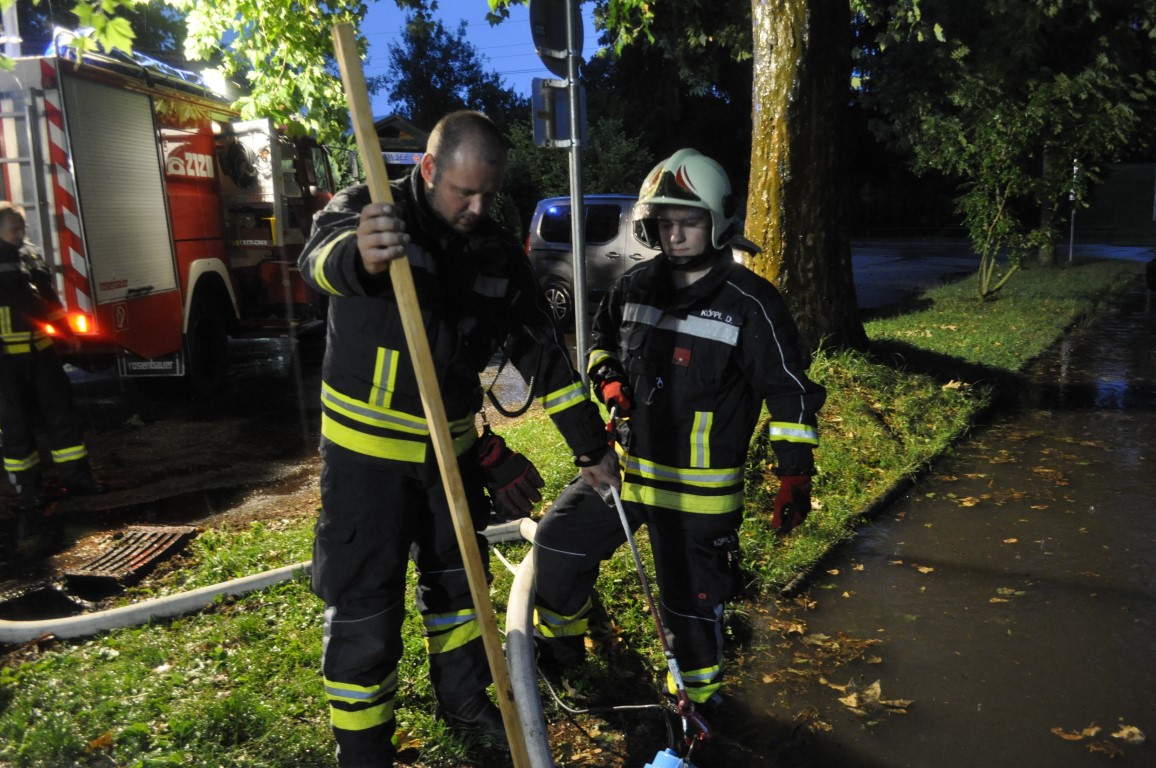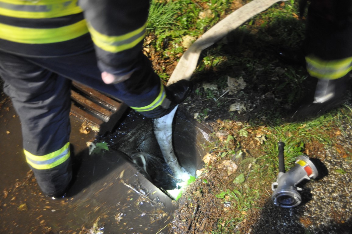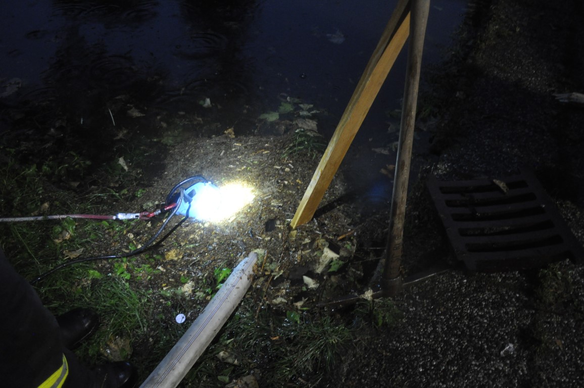 Nach kurzer Erkundung konnten wir das durch die Unwetter verschlossene Abflussrohr mittels Tauchpumpe und Flankierschlauch wieder freimachen.