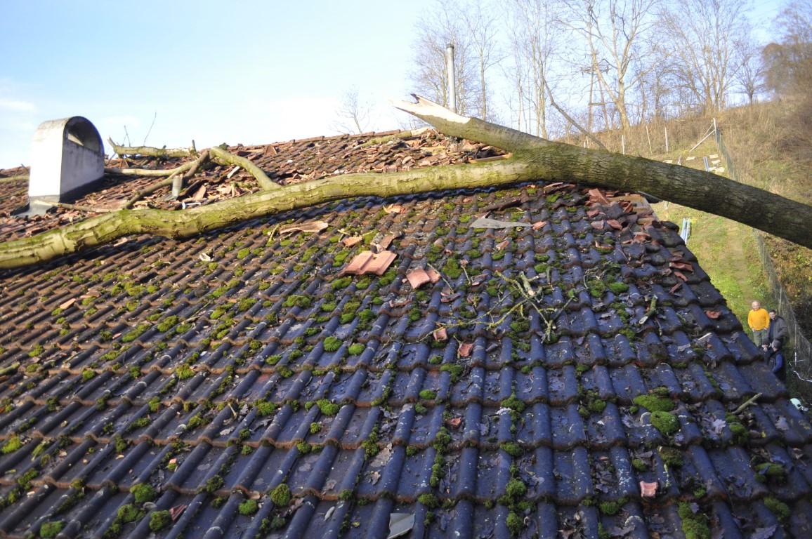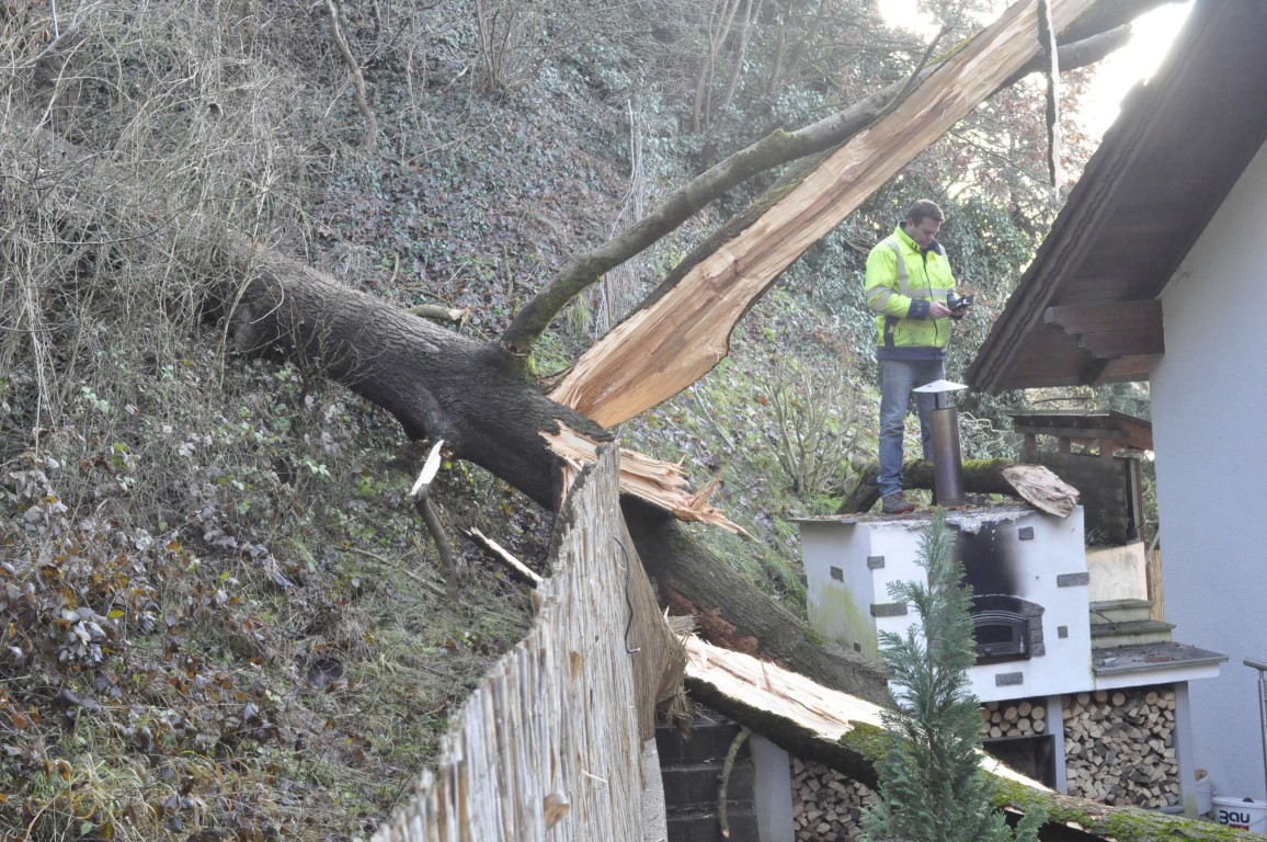 Für eine Familie in Windegg endeten die Weihnachtsfeierlichkeiten abrupt, als kurz vor 14 Uhr mit einem lauten Knall ein Baum auf das Haus stürzte. „Warum die Esche umgestürzt ist, kann noch nicht gesagt werden“, so der Einsatzleiter Abschnitts-Feuerwehrkommandant Christian Breuer, der für die Arbeiten am Dach sofort den Strom abschalten ließ und die Höhenretter von der Freiwilligen Feuerwehr Schweinbach nachalarmierte.