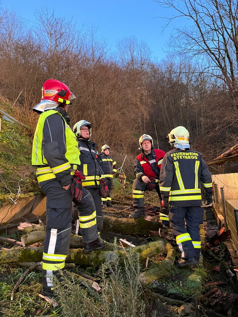 Von der Freiwilligen Feuerwehr Steyregg standen 25 Kräfte im Einsatz und vom Stützpunkt Schweinbach rückten 8 Höhenretter aus. Die Arbeiten konnten erst bei Dunkelheit um 18 Uhr abgeschlossen werden. Der Abschnitts-Feuerwehrkommandant Christian Breuer bedankte sich ganz besonders bei den Freiwilligen Feuerwehrleuten, die durch ihren Einsatz der Familie geholfen haben und selbst ihren Weihnachtstag und die Zeit bei ihren Familien geopfert haben.