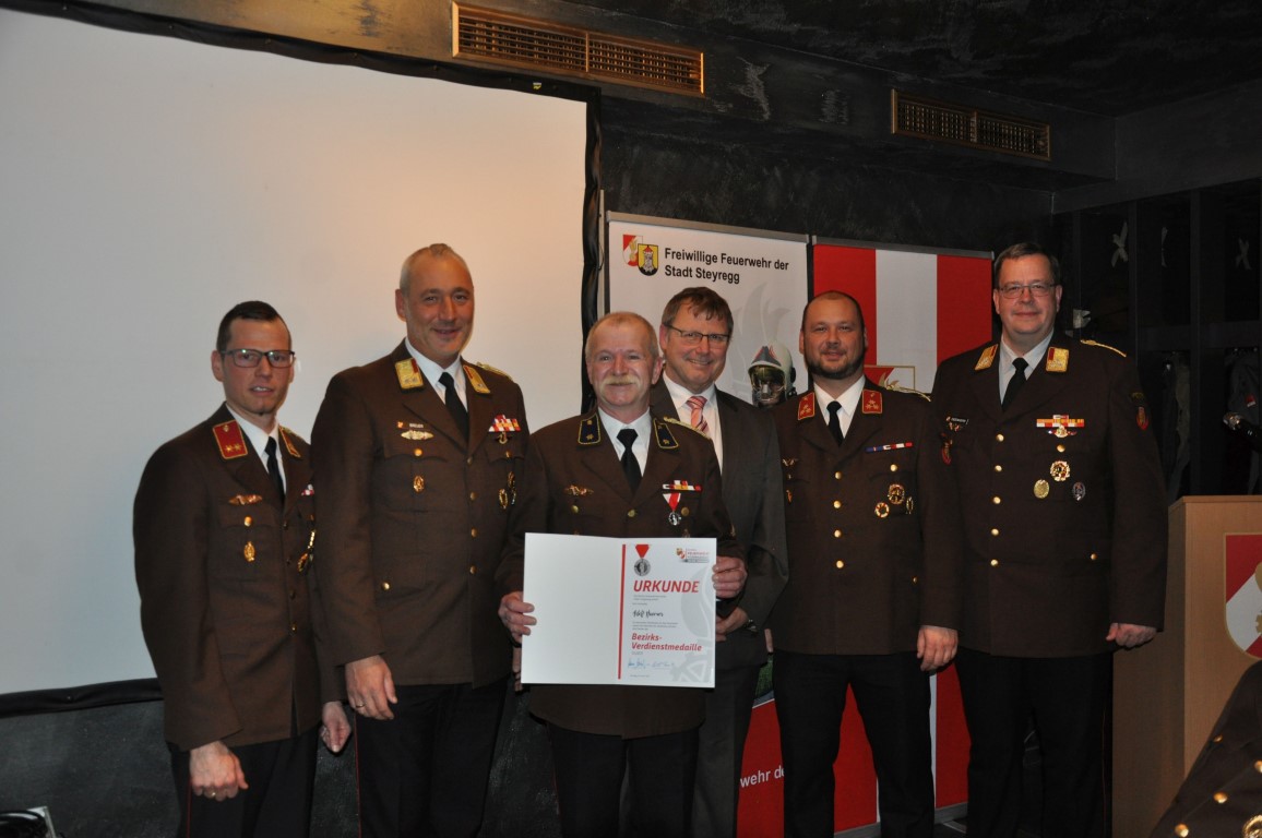 Für ihre wertvolle und aufopfernde Tätigkeit in der Feuerwehr wurden HBI Rudolf Breuer, AW Jürgen Rametsteiner und AW Adolf Huemer mit der Verdienstmedaille des Bezirkes Urfahr-Umgebung in Silber ausgezeichnet.