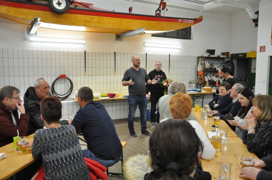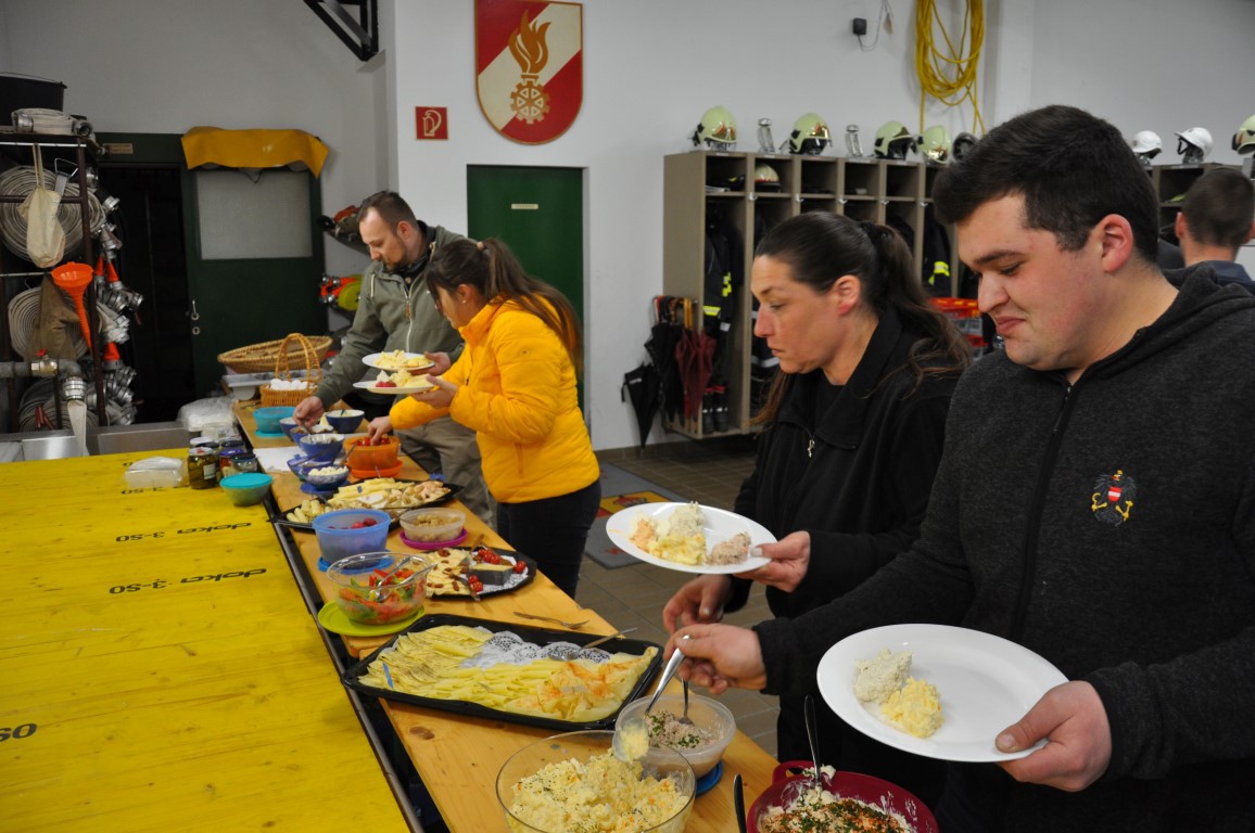 Als um 18.00 Uhr alle eintrafen, hatten Kamerad E-BI Karl Wöckinger und seine Frau Elisabeth bereits alles liebevoll vorbereitet. Nach der Begrüßung von Kommandant HBI Breuer Rudolf wurden wir mit einem hervorragenden Heringskäse, diverser Käsesorten sowie weiterer Leckereien verköstigt.