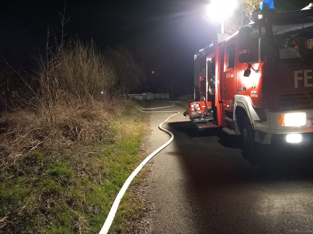 Mittels Tauchpumpe wurde das Wasser aus dem Nebenarm der Donau hinaufgepumpt und mit der Fox wurde das Wasser zum Wasserwerfer befördert.