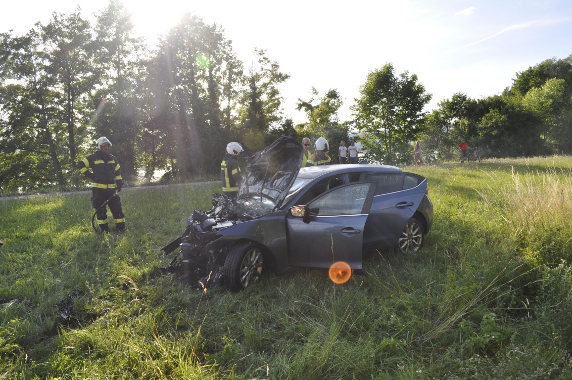 04.07.2023 – Verkehrsunfall mit eingeklemmter Person und Brand KFZ