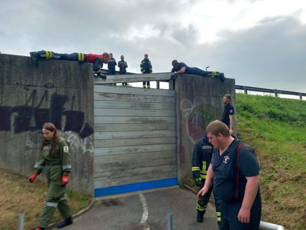 In diesem Abschnitt wurden Hochwasserschutzsysteme aufgebaut, diverse Schieber und Klappen geschlossen, um ein Eindringen von Wasser zu verhindern.