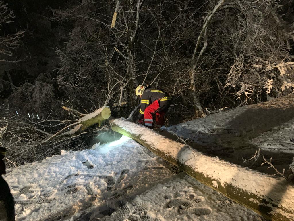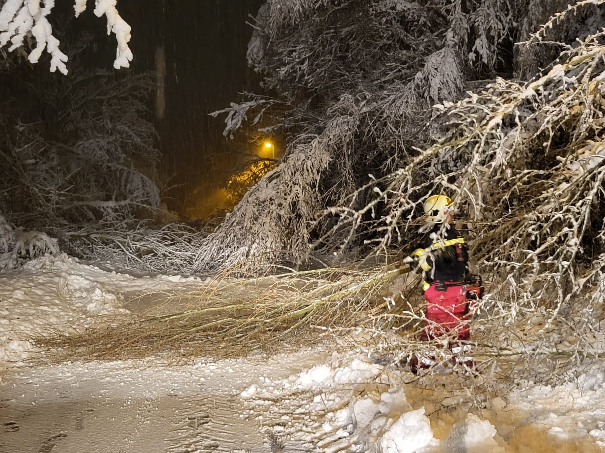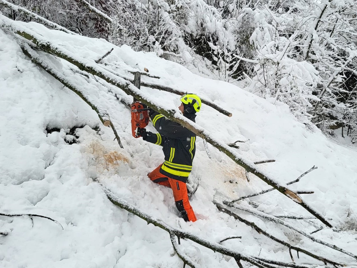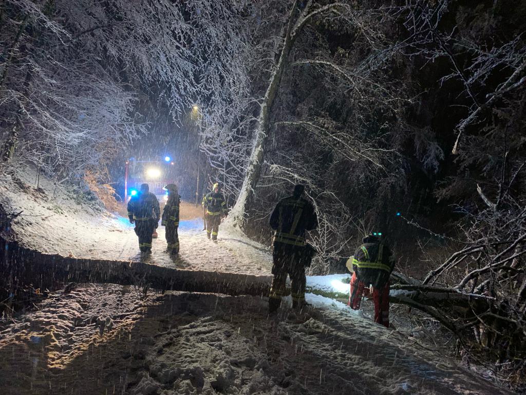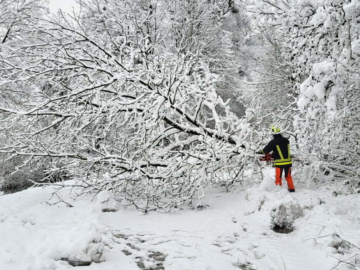 Unter der Schneelast waren einige Bäume umgefallen und lagen auf der Straße: