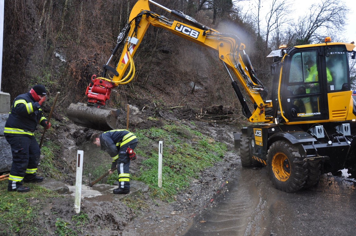 Da der Kanal vom Unwetter verlegt wurde, haben wir diesen mittels Bagger freigelegt.