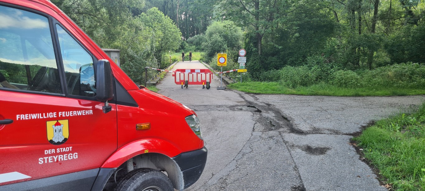 Die Spundwände des Hochwasserschutzes wurden dementsprechend in Stellung gebracht und die Zufahrten bzw. Straßen und Wege zum Treppelweg im Gemeindegebiet Steyregg behördlich gesperrt.