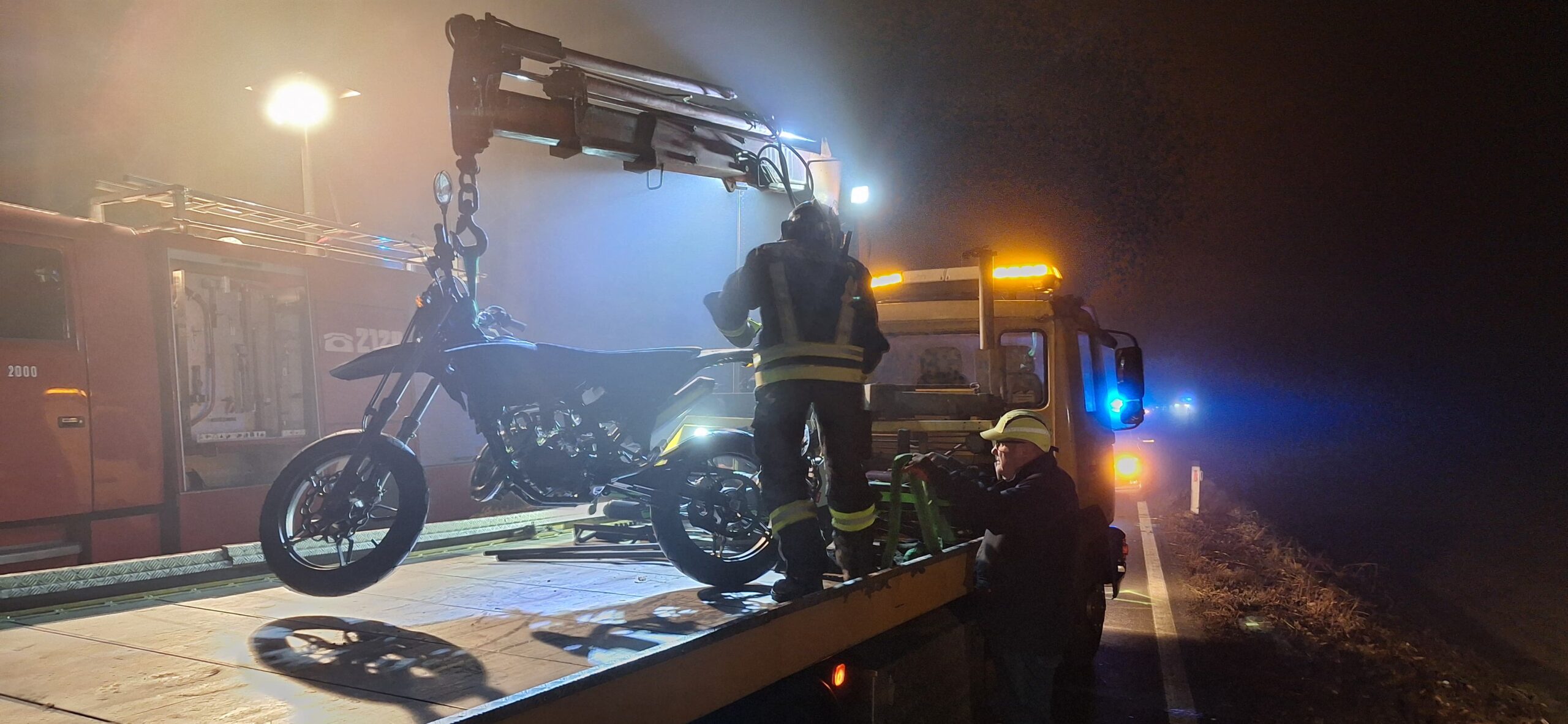 Nach Abschluss der Rettungs- und Sicherungsarbeiten wurde die Fahrbahn gereinigt, um die Verkehrssicherheit wiederherzustellen. Außerdem unterstützten wir die Firma Wagner beim Abtransport des verunfallten Fahrzeugs.