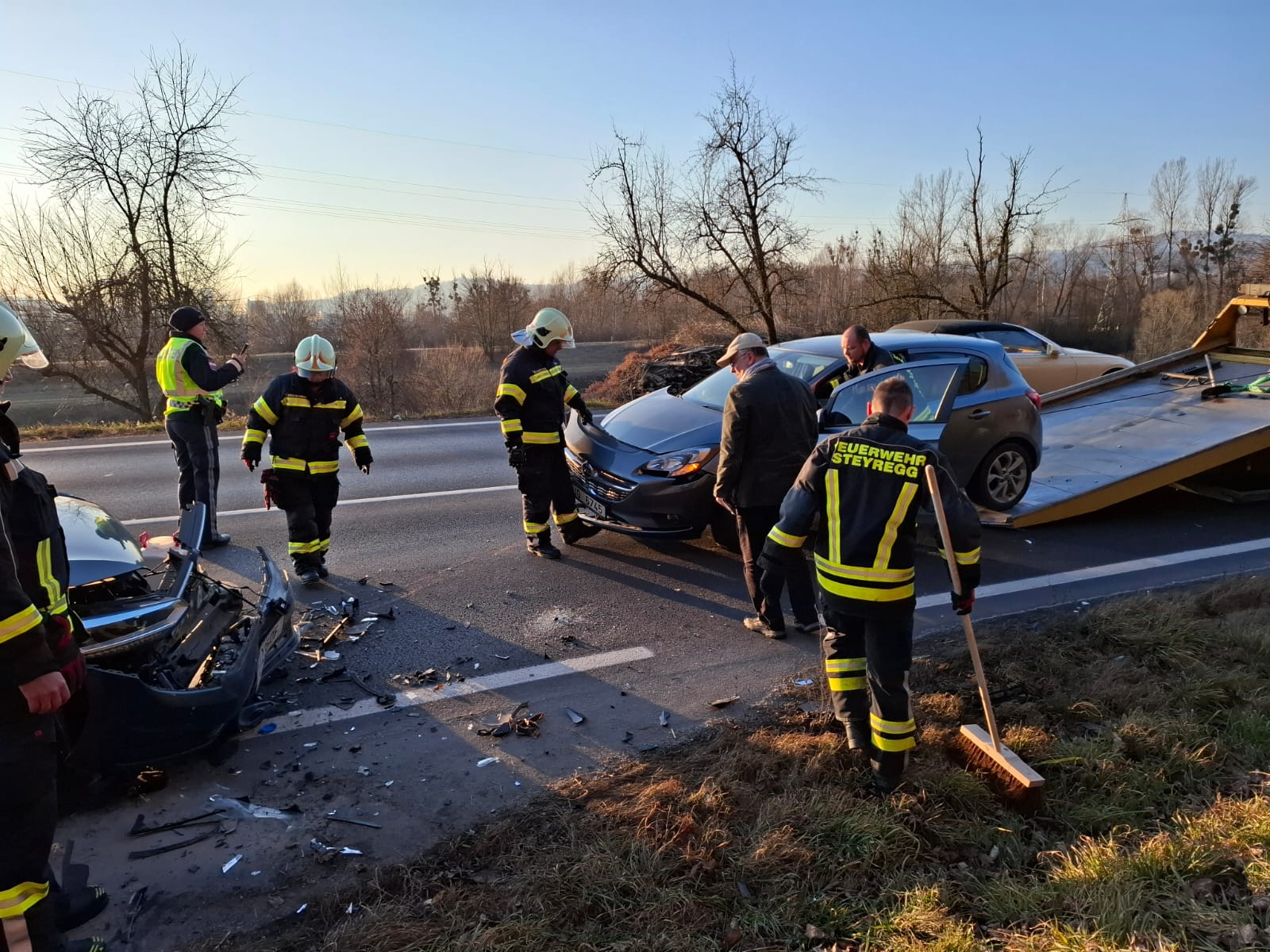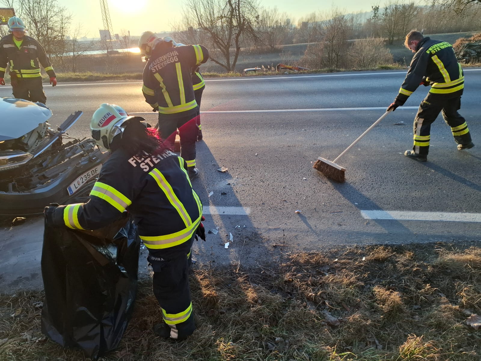 Am 19. Februar 2025 wurden um 16:22 Uhr die Feuerwehren Lachstatt und Steyregg mittels Sirenenalarm zu einem Verkehrsunfall Aufräumarbeiten nach Plesching alarmiert.