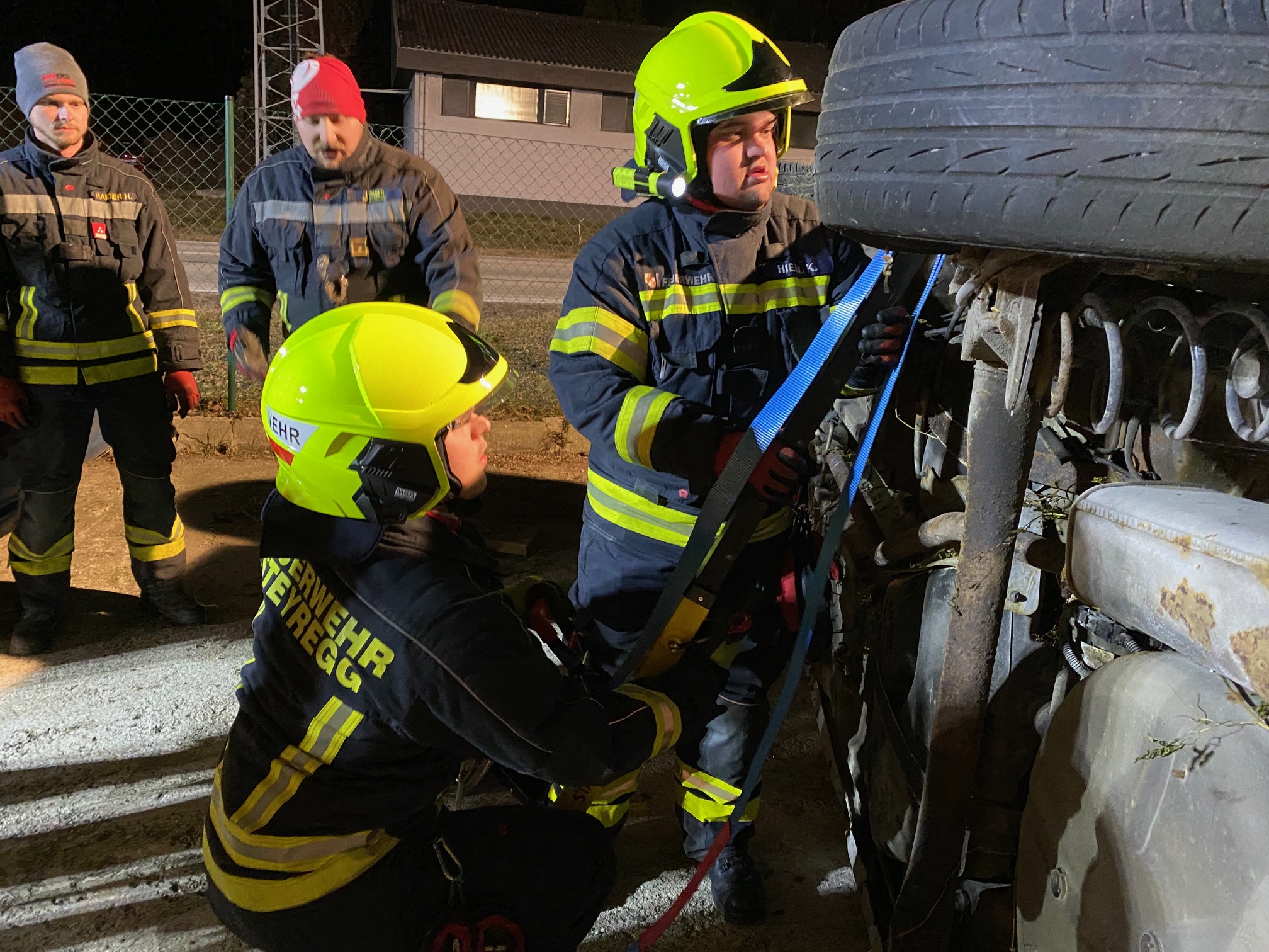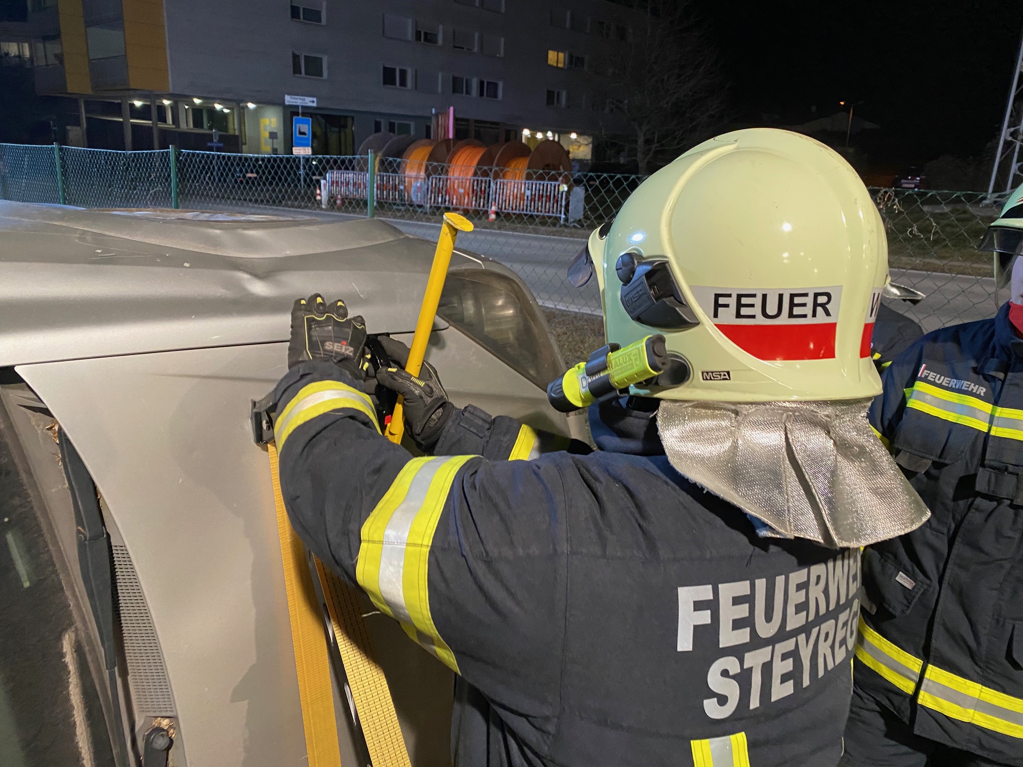 Weiters wurden einige technische Geräte zum Öffnen des Fahrzeuges getestet sowie das behutsame Retten der verletzten Insassen.