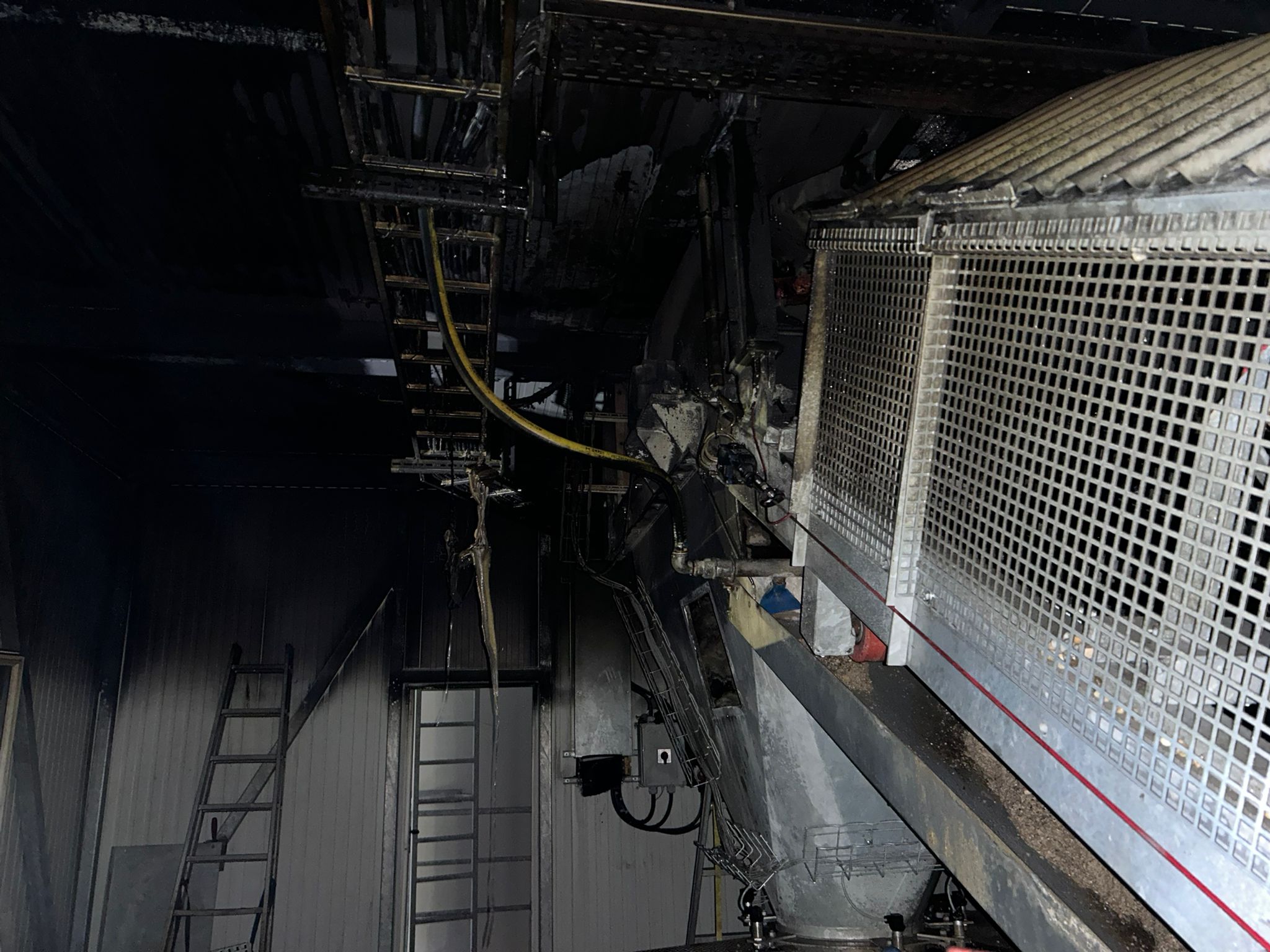 Ersten Erkenntnissen zufolge dürfte der Brand durch Funkenflug infolge vorangegangener Schweißarbeiten ausgelöst worden sein. Ein Mann, der mit diesen Arbeiten beschäftigt war, wurde vom Rettungsdienst mit Verdacht auf Rauchgasvergiftung ins Krankenhaus gebracht.