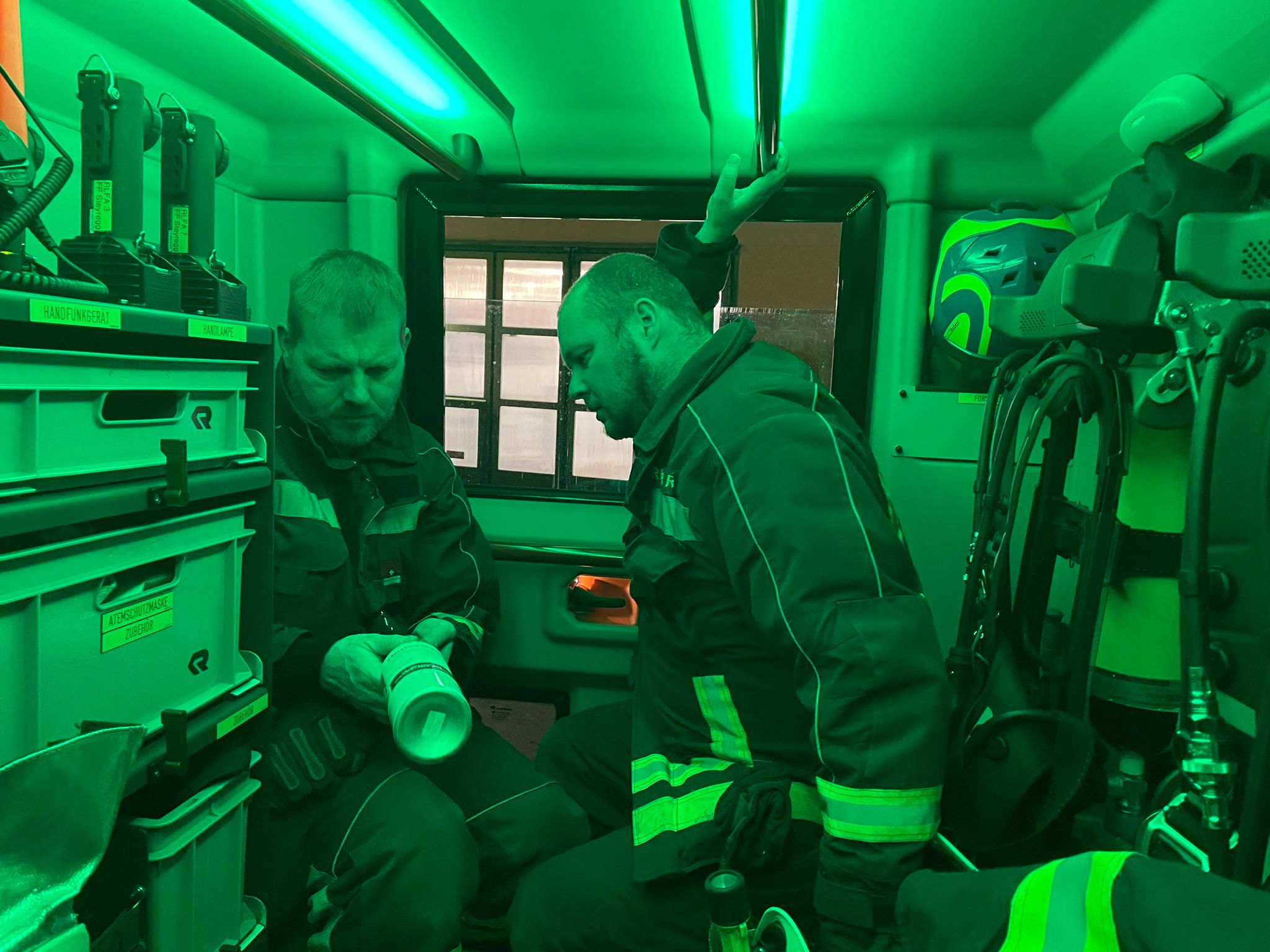 Im theoretischen und praktischen Teil wurden sämtliche relevanten Funktionen, Einrichtungen sowie die Bedienung der Einsatzfahrzeuge ausführlich durchgenommen. Mit den B-Fahrern erfolgte die Einschulung am Kommandofahrzeug (KDOFA), wobei insbesondere die Handhabung der Sondersignalanlage (Blaulicht, Folgetonhorn), Funkgeräte sowie weitere fahrzeugspezifische Ausstattungen behandelt wurden.