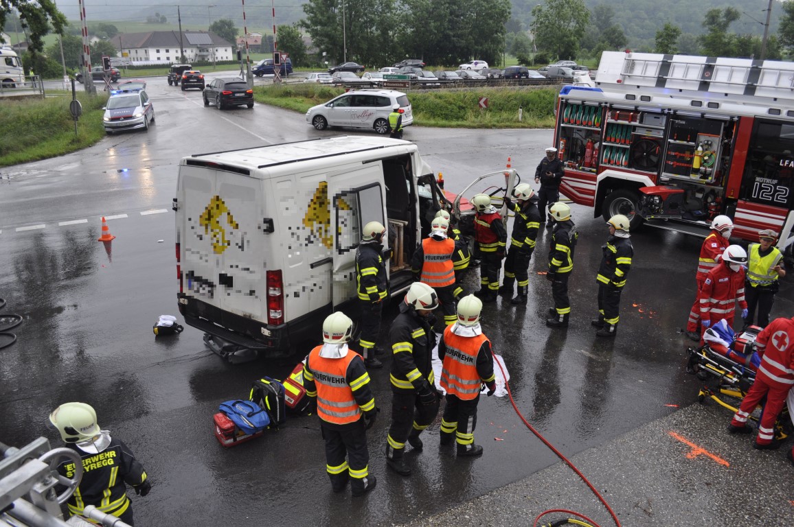 Am 07.06.2022 wurden die Feuerwehren Steyregg und Luftenberg um 08:14 Uhr zu einem Verkehrsunfall auf der B3, Pulgarner Kreuzung alarmiert.